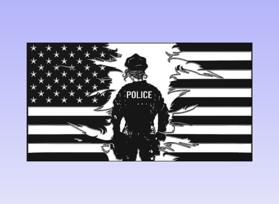 This is a digital file for a Female officer flag. The download will be initiated after purchase via email. Once your purchase is complete you will receive an email to your provided email address with a trusted download link. The files that are included in this link are CRV (vectric 11), SVG, DXF, and a JPG of the cut preview for reference.